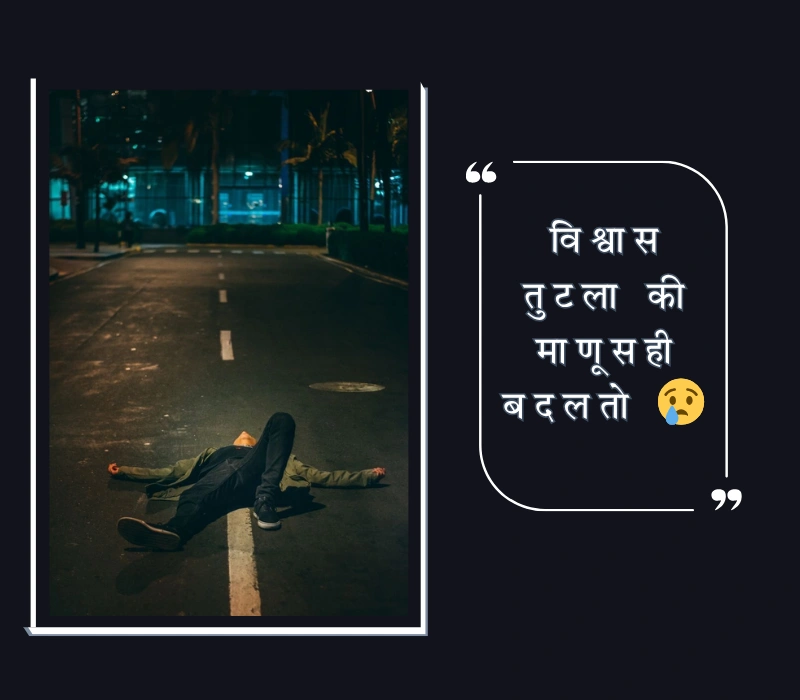 टोमणे विश्वासघात मराठी Status तुम्ही WhatsApp Status, Instagram Caption, Facebook Post किंवा Stories मध्ये सहज वापरू शकता.